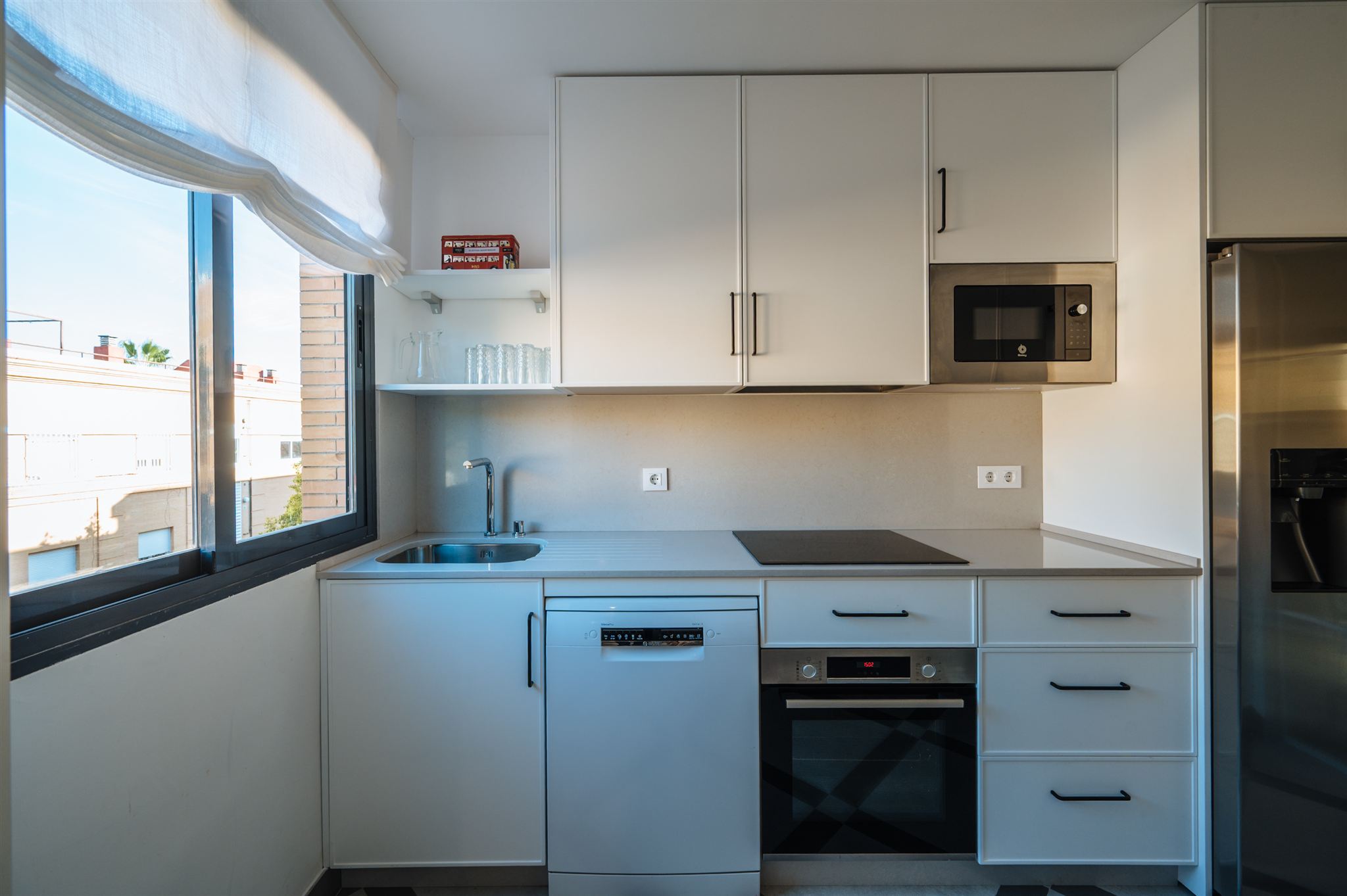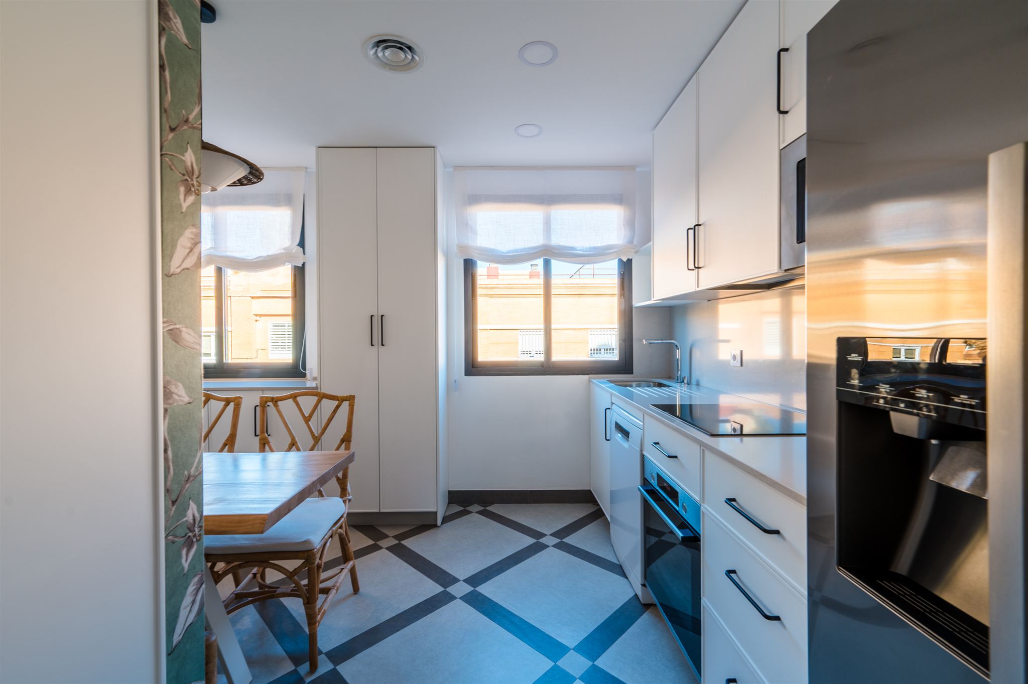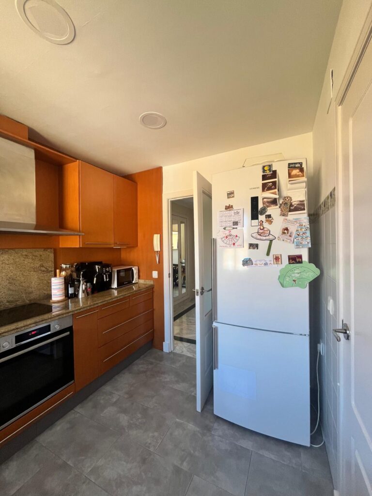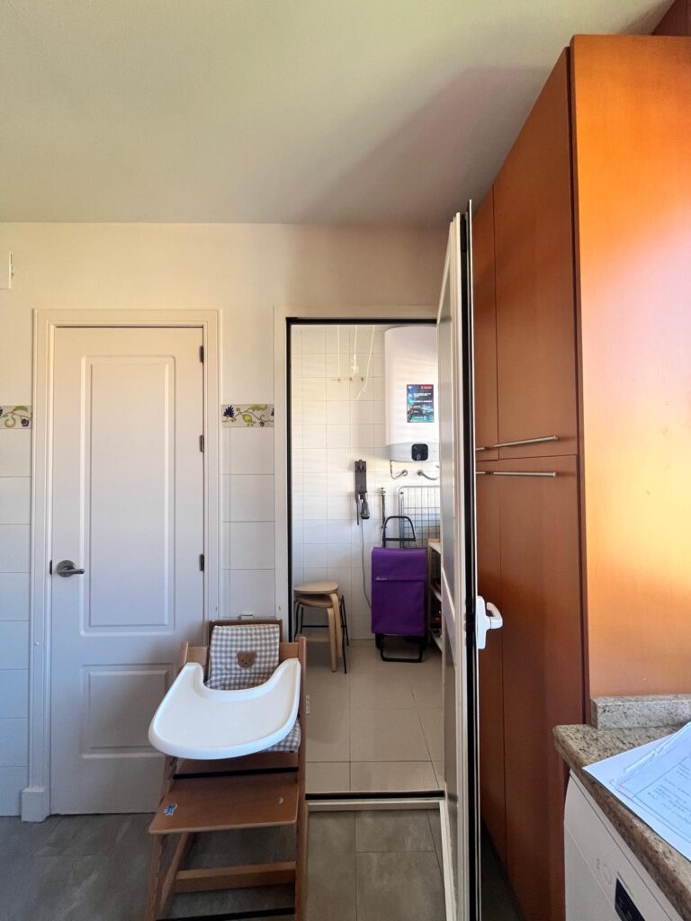 Demolimos toda la tabiquería para crear una cocina amplia llena de luz incluyendo todas las necesidades de nuestros clientes: zona de office, zona de lavadero integrada, armarios columnas, desayunador y zona de trabajo.