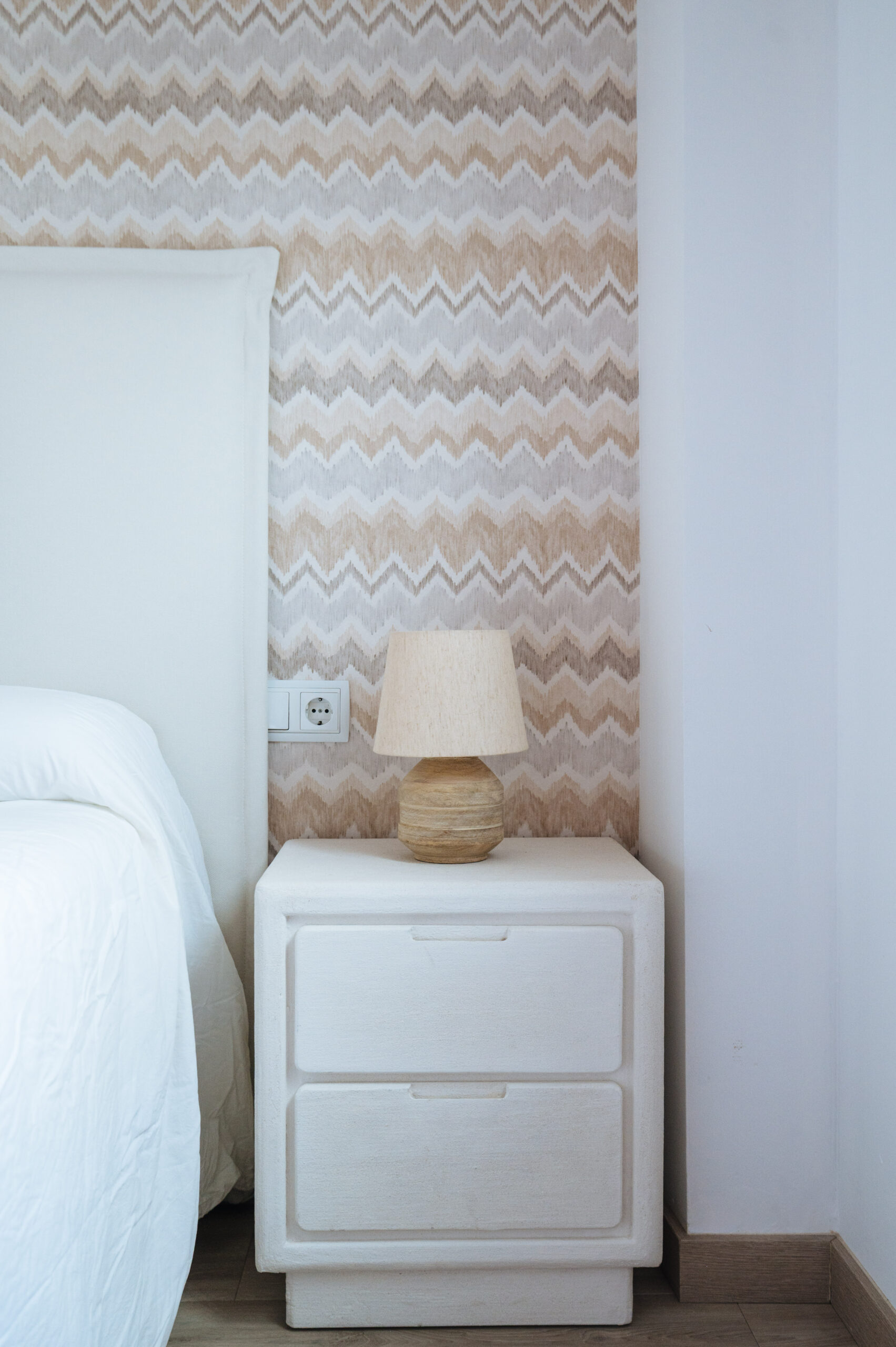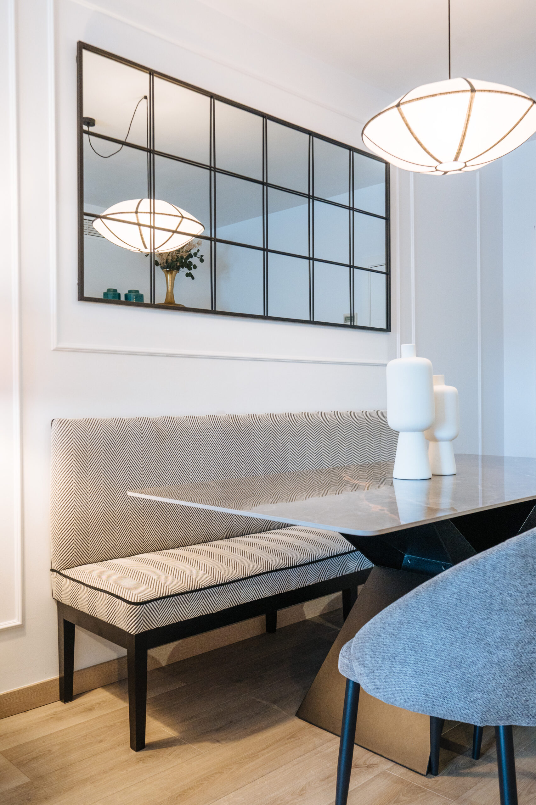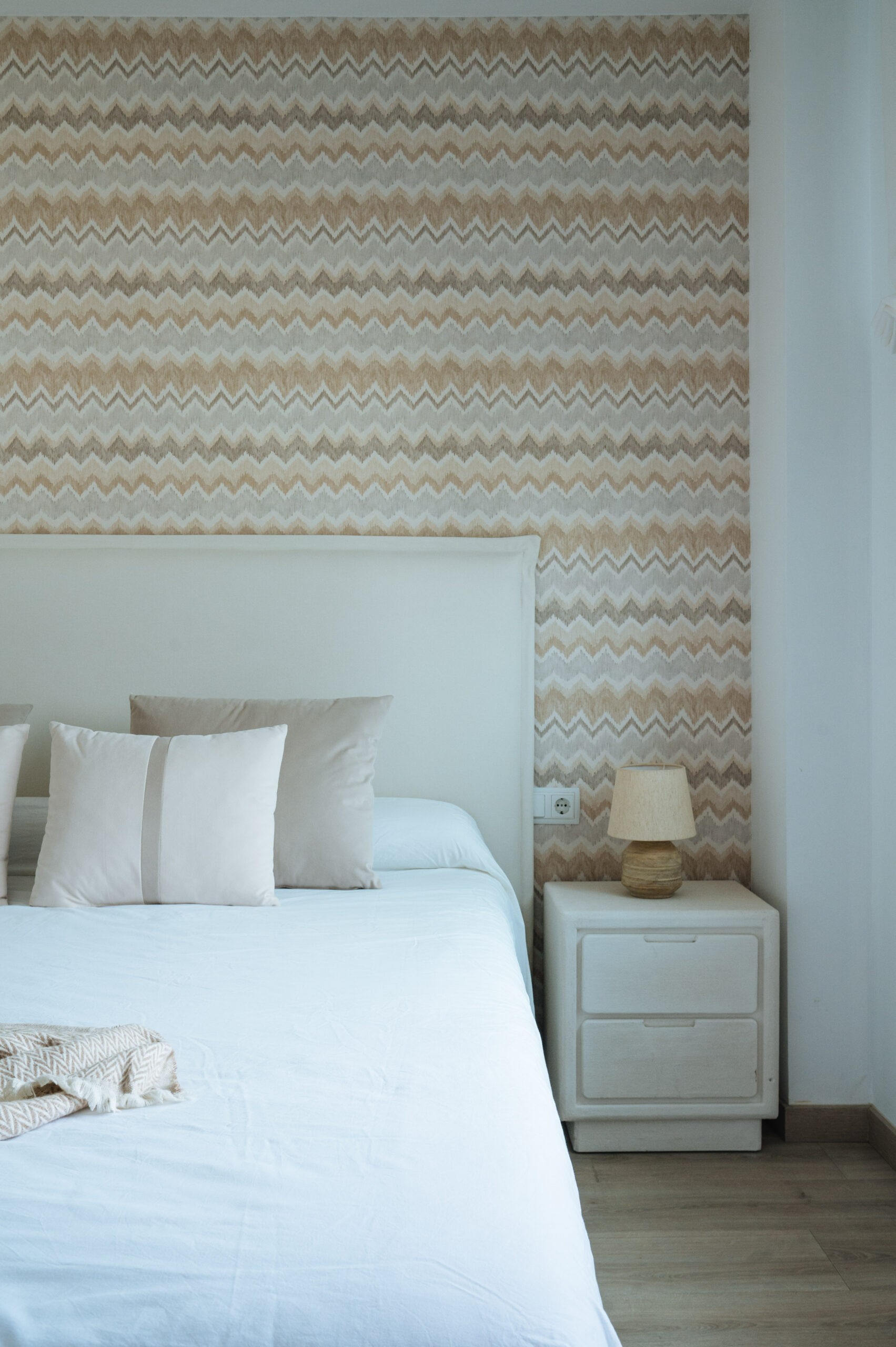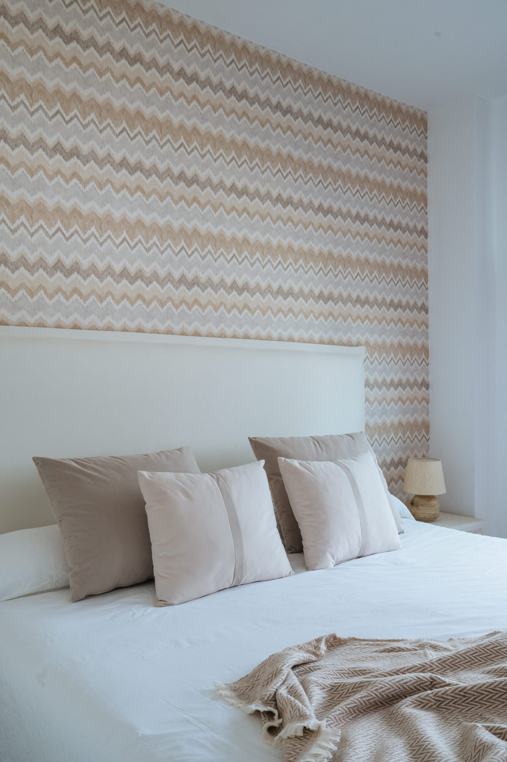 En cada una de las estancias fuimos incluyendo papeles, murales, textiles, molduras en pared, decoración vertical, mobiliario, mueble a medida y lámparas decorativas.
