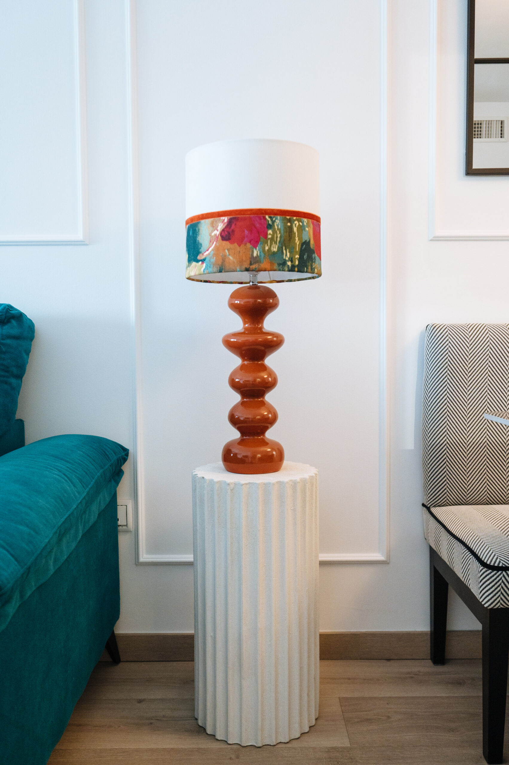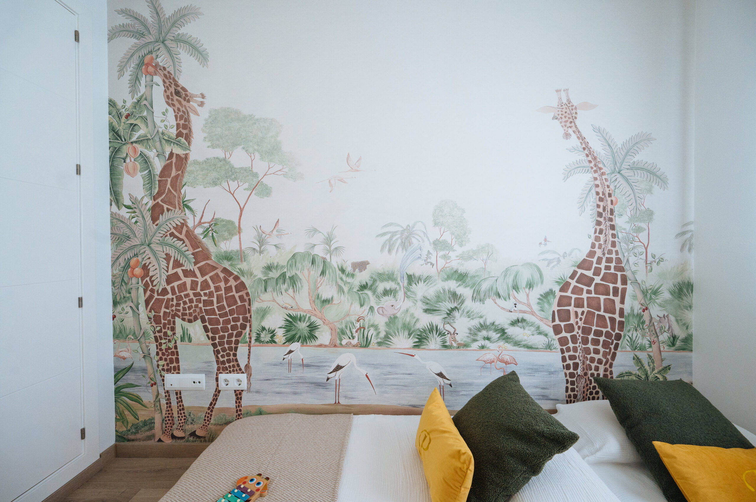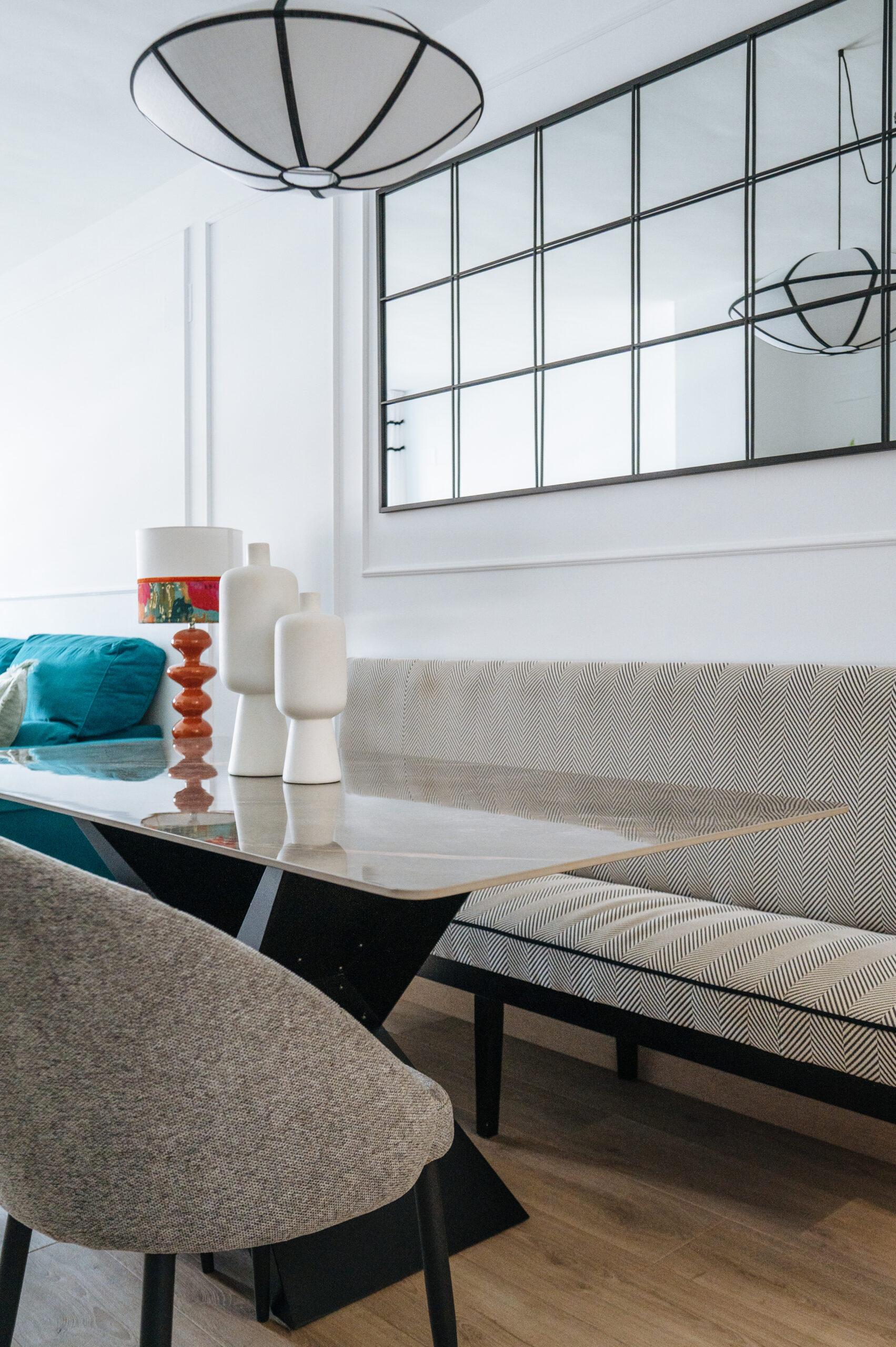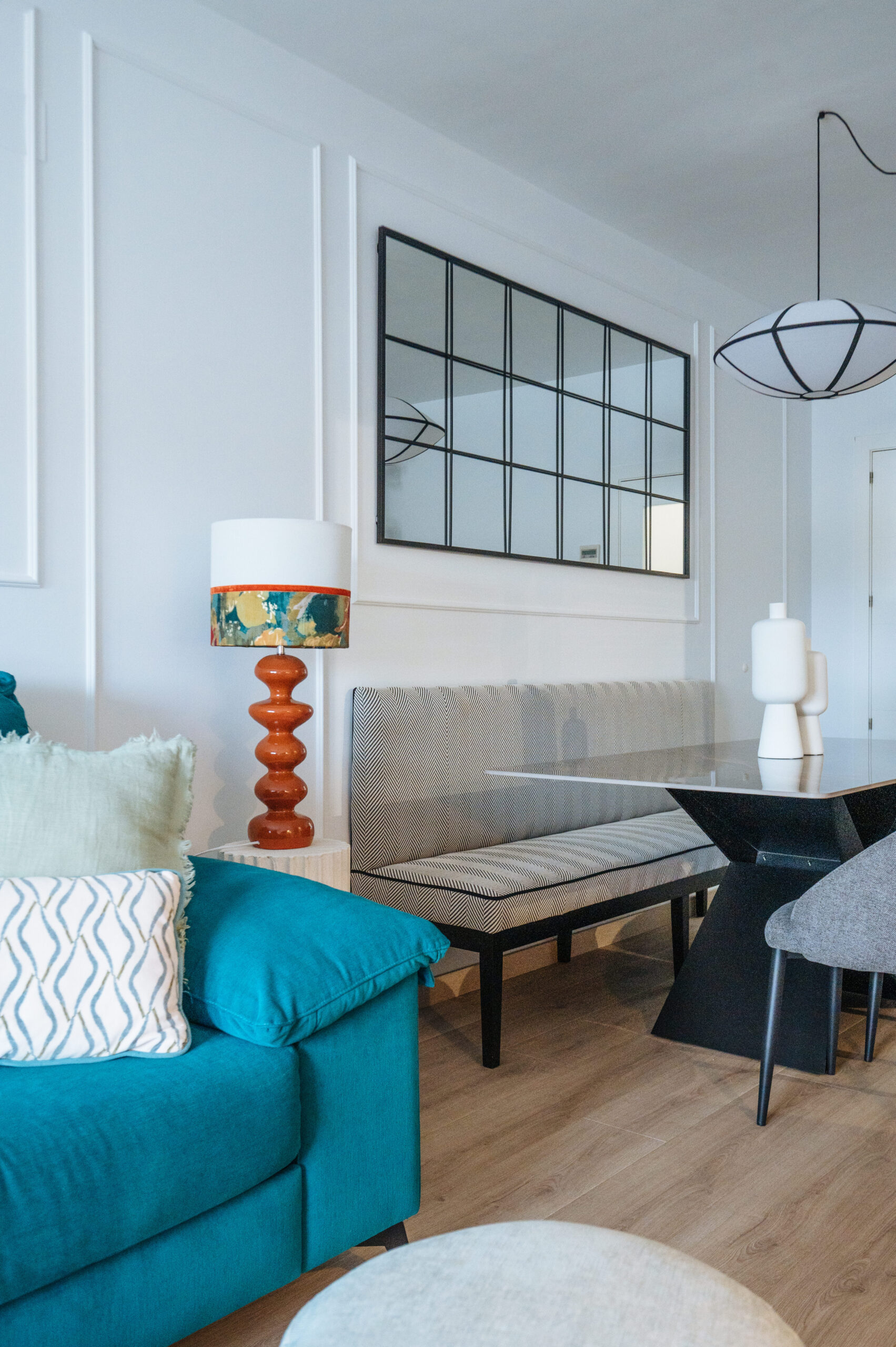En cada una de las estancias fuimos incluyendo papeles, murales, textiles, molduras en pared, decoración vertical, mobiliario, mueble a medida y lámparas decorativas.