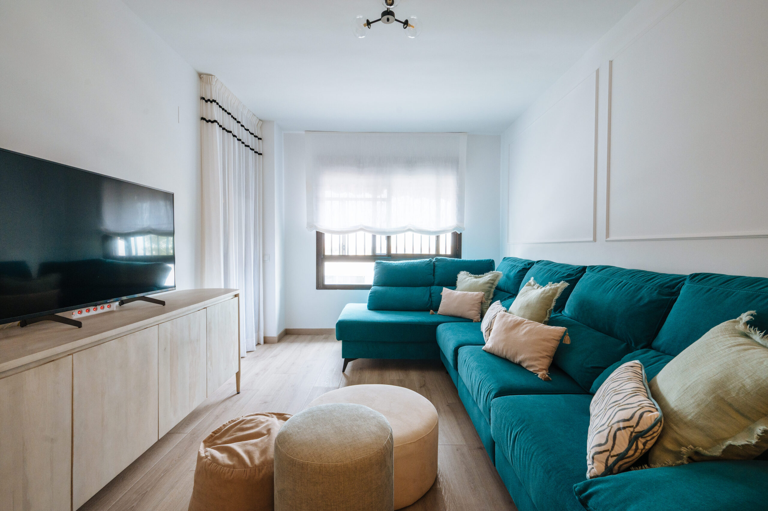 En este proyecto, nuestros clientes se encontraban en apuros, recién mudados y con dos bebes en el mundo al que dedicarle todo su tiempo. Necesitaban convertir su piso en un hogar acogedor lleno de vida.